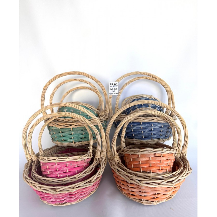 3'LÜ RENKLİ SEPET HASIR ÖRME MİX SEPET 1 KOLİ 28 TAKIM